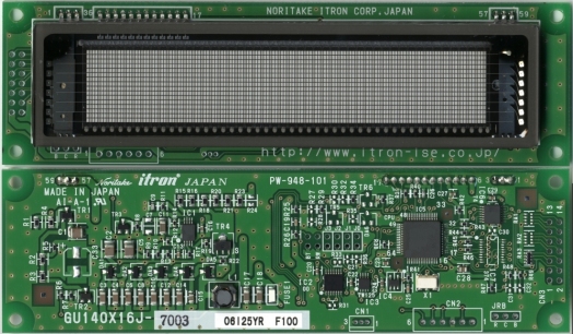 2x23 emulation using graphic VFD 140x16 dots. These modules have firmware offering 4 user definable window areas and international fonts. Scroll and flash with graphic upload functions. Choice of interface methods. Multi sized fonts. Operating Temp -40°C to +85°C. Single 5V supply.