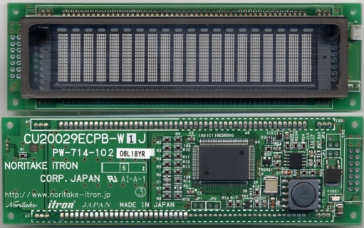 CU20029-UW1J 2x20 LCD Emulation. Single 5V Supply with Power Save Mode. 4 Level Brightness Control Function. Operating Temp -40°C to +85°C Part Number CU20029-UW1J Part Suffix -UW1J Char Heights Std 9.2mm UDF 8 characters PCB Size 146x43 mm Quick Spec Power Supply 5VDC @ 400mA Full Spec Parallel Bus M68/i80 4/8bit Bi-Direct MTBF Serial Ports Mechanical Font Sizes 5x7 Environmental Font Types LCD + Extended 3D Image Options Connectors prefitted PCB Image Semi-Custom ModMaster Download Software File Price & Delivery Print