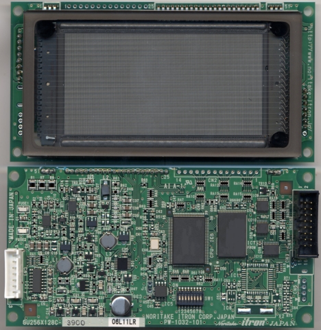 Up to 16 lines of 42 characters plus graphics using a 256x128 dot graphic VFD. This module provides multi-sized international fonts, user command macro storage, bit map download and user. I/O for key scan and LED drive. Parallel and RS232 interfaces.