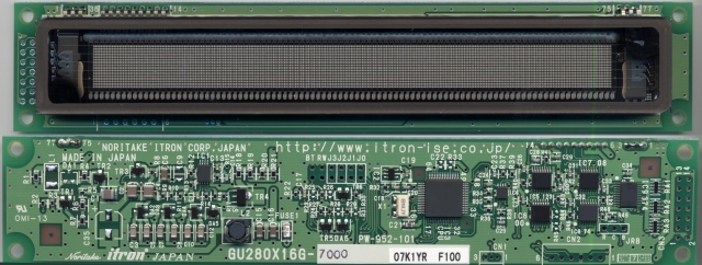 GU280x16G-7000x 2x40 emulation using graphic VFD 280x16 dots. These modules have firmware offering 4 user definable window areas and international fonts. Scroll and flash with graphic upload functions. Part Number GU280x16G-7xxx Part Suffix 7000 7003 Char Heights Std 4.9mm Large 9.8mm Interface/Fonts i80 Parallel, Async. RS232 Sync & Async Serial PCB Size 182x33.5 mm Quick Spec Power Supply 5VDC @ 400mA Full Spec Parallel Bus i80 8bit Bi-Direct MTBF Serial Ports Sync. & Async. RS232 Mechanical Font Sizes 5x7 with magnification Environmental Font Types International 3D Image Options Connectors prefitted PCB Image Semi-Custom ModMaster Download Software File Price & Delivery Print