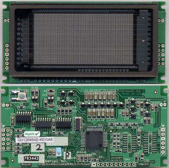 Up to 8 lines of 21 characters plus graphics using a 128x64 dot graphic VFD. Async-serial links ranging from 4800 to 38400 baud and SPI/I2C data rates of more than 500 KHz. EEPROM memory is used to retain configuration and macro data. 4 font sizes and 8 user ports with auto key scan. This module is designed for customisation.