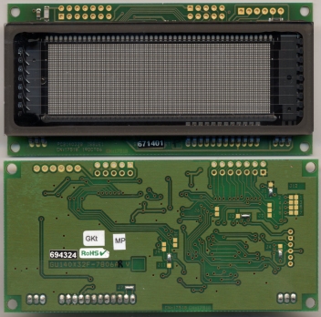 GU140x32F-7806AR/C 4x20 LCD Emulation using graphic VFD 140x32 dots with draw commands and unique 'pass-thru' serial port Part Number GU140X16G-7806ARx Part Suffix 7806AR 7806ARC Char Heights Std 4.6mm Large 9.4mm UDF + European + Cyrillic PCB Size 98x47 mm Quick Spec Power Supply 5VDC @ 450mA Full Spec Parallel Bus M68/i80 4/8bit Bi-Direct MTBF Serial Ports Async , SPI , User Ports Mechanical Font Sizes 5x5, 5x7, 10x14 Environmental Font Types LCD + International 3D Image Options Connectors prefitted PCB Image Semi-Custom Fonts and Commands ModMaster Download Software File Price & Delivery Print