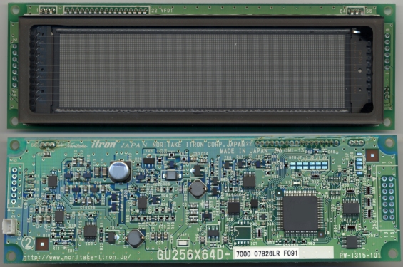 8x42 emulation using graphic VFD 256x64 dots. These modules have firmware offering 4 user definable window areas and international fonts. Scroll and flash with graphic upload functions. Multi sized fonts. Operating Temp -40°C to +85°C. Single 5V supply.