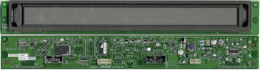 GU512x32H-3900 Up to 4 lines of 85 characters plus graphics using a 512x32 dot graphic VFD. Large 6x8, 8x16, 16x16, 16x32 font sizes and ASCII, European and Asian fonts. User I/O for key scan and LED drive. Part Number GU512x32H-3900 Part Suffix 3900 Char Heights Std 5.6mm Large 25.4mm UDF Par/RS232 PCB Size 372x49 mm Quick Spec Power Supply 5.0VDC @ 80mA & 24VDC @ 270mA Full Spec Parallel Bus /WR 8 bit Software Spec Serial Ports RS232 Async Serial Mechanical Font Sizes 6x8, 8x16, 16x16, 16x32 Environmental Font Types ASCII, European and Asian 3D Image Options Interface configuration PCB Image Semi-Custom ModMaster Download Software File Price & Delivery Print