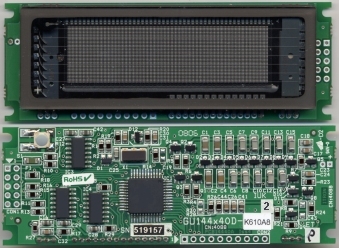 Up to 5 lines of 24 characters using a 144x40 dot graphic VFD. Async-serial links ranging from 4800 to 38400 baud and SPI/I2C data rates of more than 500kHz. EEPROM memory is used to retain configuration and macro data. 4 font sizes and 8 user ports with auto key scan. This module is designed for customisation.