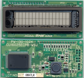CU16025-UW6J 2x16 LCD Emulation. Single 5V Supply with Power Save Mode. Selectable 4/8 bit M68/i80 Interface. ASCII + Extended Character Font. 8 User Definable Character RAM. 4 Level Brightness Control Function. Part Number CU16025-UW6J Part Suffix -UW6J Char Heights Std 4.76mm UDF 8 characters PCB Size 80x36 mm Quick Spec Power Supply 5VDC @ 150mA Full Spec Parallel Bus M68/i80 4/8bit Bi-Direct MTBF Serial Ports 8 bit clock serial Mechanical Font Sizes 5x7 Environmental Font Types LCD + Extended 3D Image Options Connectors pre-fitted PCB Image Semi-Custom ModMaster Download Software File Price & Delivery Print